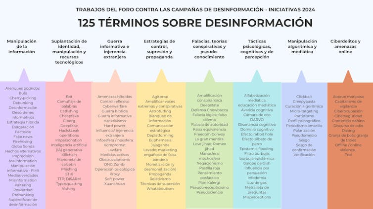 Sin embargo, la falsedad, la manipulación y la tergiversación de la realidad tienen formas poliédricas que a veces, por su sutileza, resulta complejo identificar. Bajo esta premisa, once investigadores de diez instituciones distintas hemos recopilado 125 términos sobre desinformación en un capítulo de libro que forma parte de la publicación anual del Foro contra las campañas de desinformación en el ámbito de la seguridad nacional.