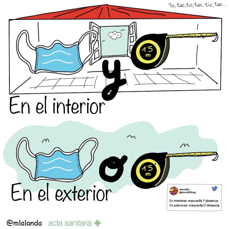Las mascarillas son necesarias en interiores y en el exterior si no hay distancia de seguridad. En exteriores con distancia de seguridad la mascarilla no es necesaria. El riesgo de infección en exteriores es muchísimo menor que en interiores. Esa es una de las razones por las que en invierno hay más contagios de patógenos respiratorios, porque pasamos más tiempo juntos en interiores. No tiene sentido, por tanto, cerrar los parques como se ha hecho en otros momentos de la pandemia. Toda actividad, mejor fuera que dentro. Ir por la calle con mascarilla y quitársela al entrar en un local cerrado es como ir con el casco por la calle y quitárselo al montarte en la moto porque molesta para conducir.
